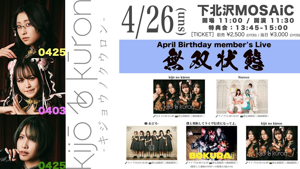 出演:Noreco/kijō no kūron/じゅじゅ/丑03-USHIMITSU-