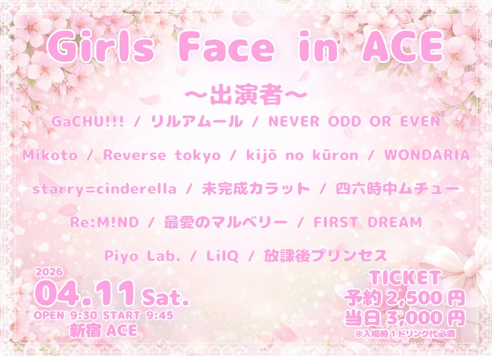 出演:あいあるちゅーん/ApolloStar/雨音とアプローズ/いつだって青い春/INSPIRE/ヴィランの掟/エトランジェ/kijō no kūron/Cortile/最果てのハイライト/THE+BETH/TheWORLD/新世界ギルドール/彗星のスターティア*/SUPER REPLiCA/ゼンゼロランカー/大罪ESCAPE/七瀬虹/白色の1ページ/はくchu♡む/PrismPotion/meltiL/Mikoto/めいどinみんな!/ももねこっ/ЯanaB/レッスントゥミー/ワガマき/わんだふるぱれーど!